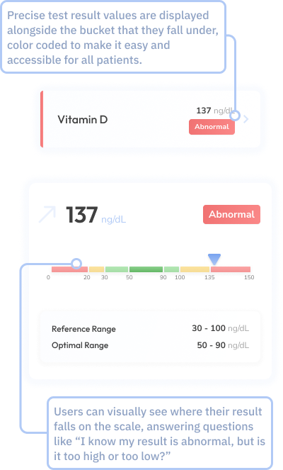 A large part of the preventative healthcare model is using biomarkers to track a patient's evolving health over time. Today, this is mostly done through blood testing. However, most blood testing facilities deliver their results in an outdated fashion, only focusing on "out of range" results, rather than honing in on optimized levels.